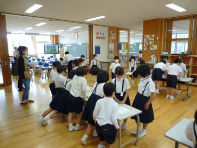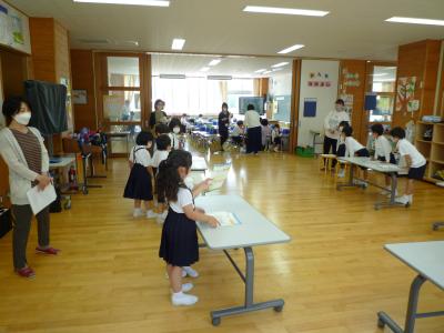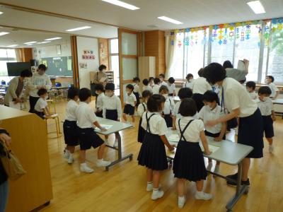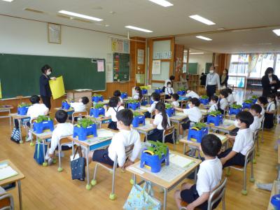 2022年5月31日 14時09分5月31日(火) 3月までお世話になった幼稚園、子ども園、幼保園の先生方が1年生の様子を見に来られました。生活科の授業でした。前半は5感を使ってあさがおを観察し絵にかき、後半は観察して見つけたことをお店やさんの形で伝え合いました。来て下さった先生方、ありがとうございました。