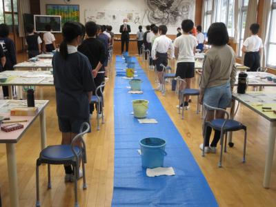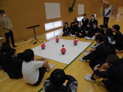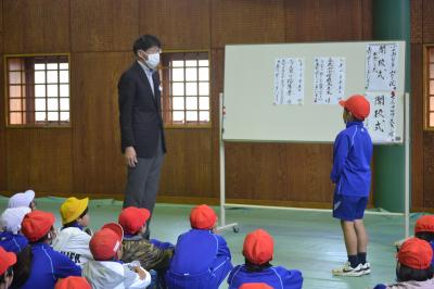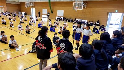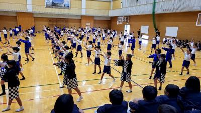 11月6日(水)5・6年生が集会でまだらを披露しました。お世話になったまだら保存会の講師の方にも見て頂きました。ありがとうございます。