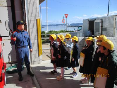 11月8日(金)3年生は消防署見学に出かけました。消防署の職員の方に丁寧に説明して頂きいたり訪問中に救急車の養成があったりして、子供たちは興味津々でした。