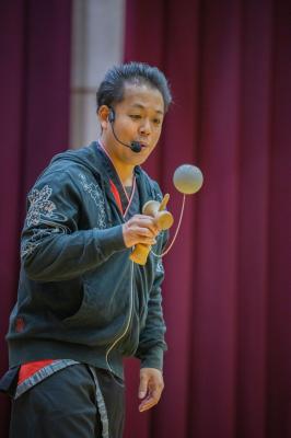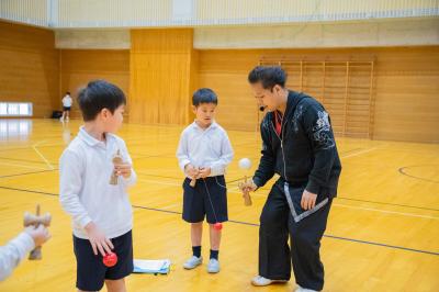11月1日(金)けん玉名人のしげきひろしさんが来校されました。今年で3年目です。小丸山っ子は随分腕をあげました。1年生にもかなり上手な子がいてびっくりです。