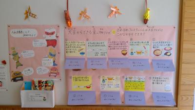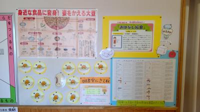 11月、給食委員会と図書委員会がコラボし、図書室でまめまめフェスティバルが開催されました。