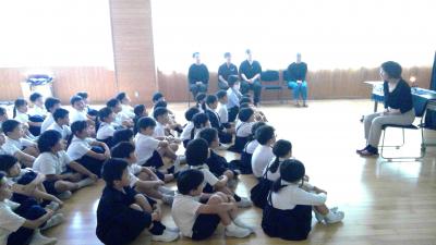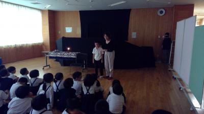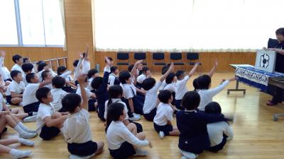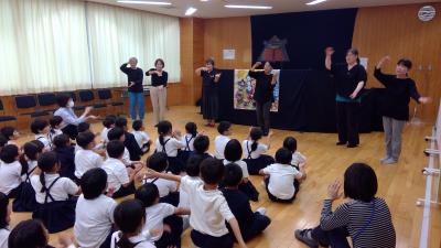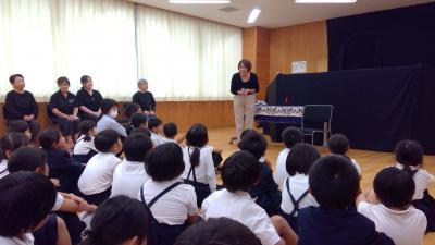 3年生は手遊び歌、紙芝居、青柏祭りのいわれに関する人形劇、5年生は3つのお話と紙芝居を楽しみました。
