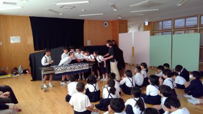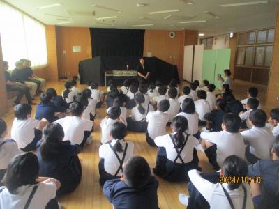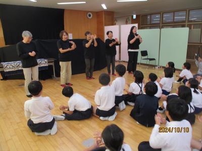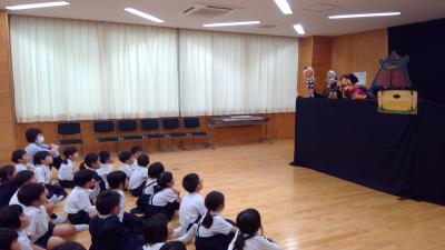 10月3日(水)しびびの会のみなさんが1年生に人形劇を披露してくださいました。今年は『でか山』に関する人形劇でした。