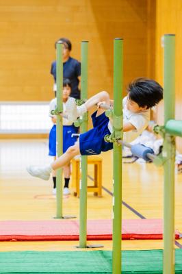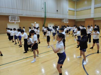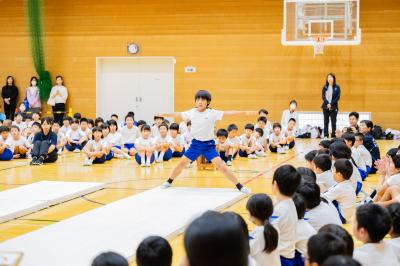10月23日(水)器械運動交歓会がありました。小丸山小学校会場では、朝日小、田鶴浜小、中島小、能登島小、小丸山小の5校が集まり、鉄棒運動、マット運動、跳び箱運動を行いました。