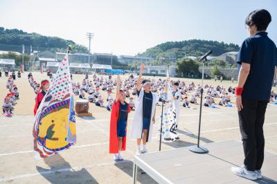 10月1日(火)好天のもと、運動会が開催できました。今年のテーマは『みんなで協力 最後まで楽しむ運動会』です。テーマ通りの運動会でした。なんと、最後は赤・白同点、両団が優勝となりました。小丸山っ子の表情が輝いていました。駐車場の案内や写真撮影、テントの片づけなどお手伝い頂いた育小会のみな様、ありがとうございました。