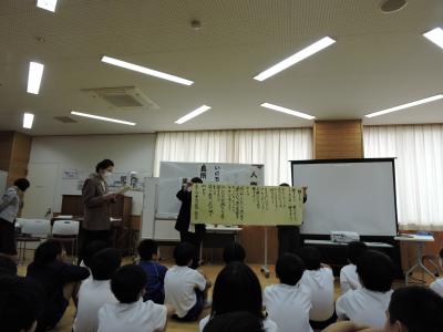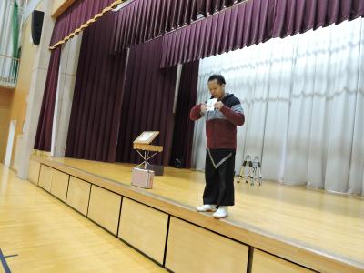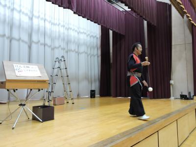 11月13日(月)今年度2度目 けん玉名人のしげきひろしさんが来校しました。子供達はけん玉検定にもチャレンジしました。