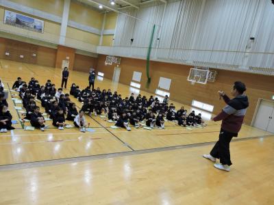 3月19日(水)突然の雪の中、サムライズの方4名が学校に来てくださいました。朝一番の挨拶と5年生と体育館でバスケットを楽しみました。サムライズのみなさん、ありがとうございます。22日と23日の試合も頑張ってください。応援しています。