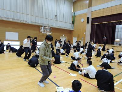 2月5日(水)雪の中、令和7年度に小丸山小学校の1年生になるお子さんと保護者の方を対象に『新1年生を迎える会と学校説明会』が行われました。新1年生は、1年生がはりきって準備した遊びを楽しみました。保護者の方が学校説明会に参加している間、5年生が読み聞かせやけん玉で新1年生と一緒に過ごしました。