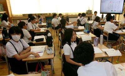 2学期3日目、授業もスタートしています。5年生の国語の授業での一コマです。