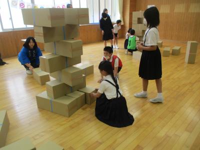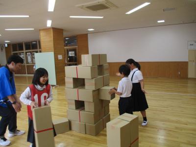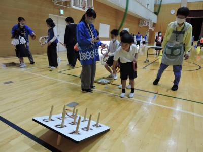 育小会の方が準備してくださった「スーパーボールすくい」「わなげ」「ボールなげ」「ダンボールジェンカ」「かたぬき」を存分に楽しみました。