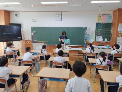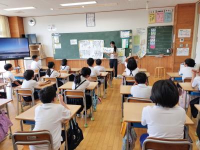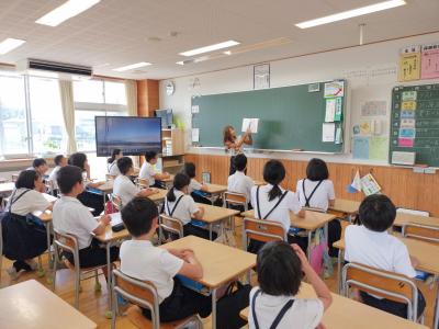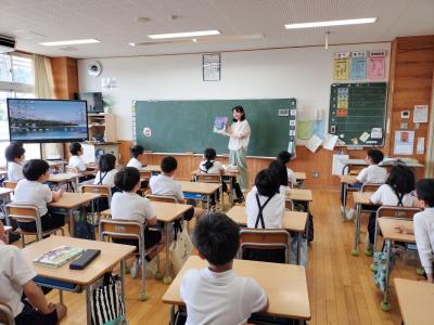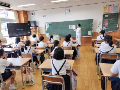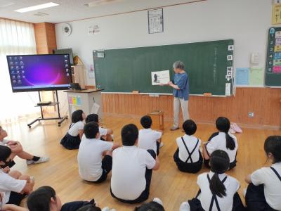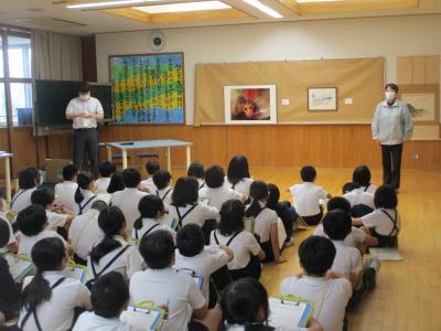 6月9日(木)七尾美術館の学芸員の北原さんと河野さんが、5年児童のリクエストに応え、作品の一部を学校まで持ち込み見せてくださいました。