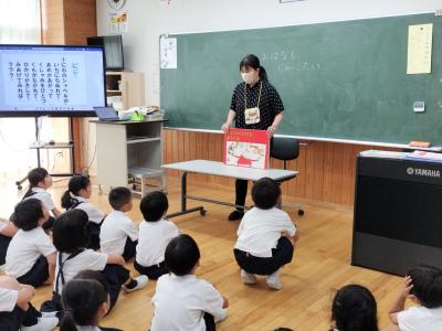 6月12日(水)今年度はじめてのおはなしにゃーご隊による読み聞かせがありました。