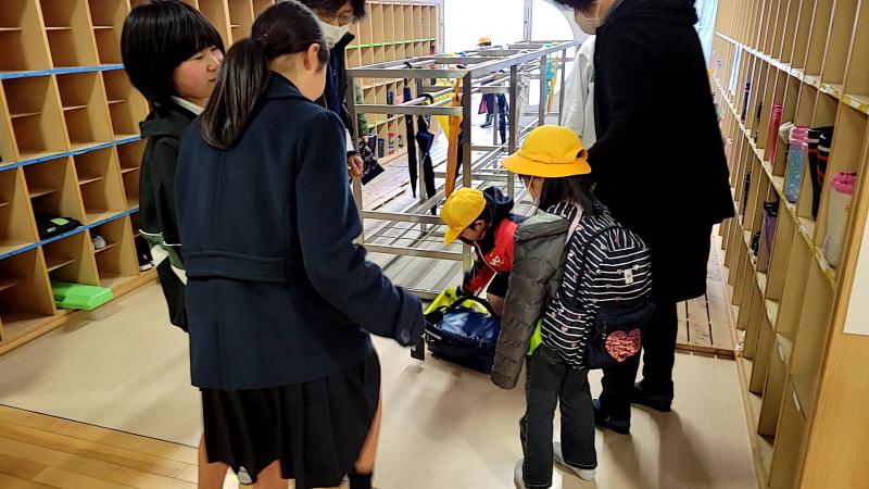 1年生と2年生は一時的に教室が変わりました。学校再開の当日朝、6年生は1年生が迷わないように、教室まで連れていってくれる姿が見られました。すてきです!