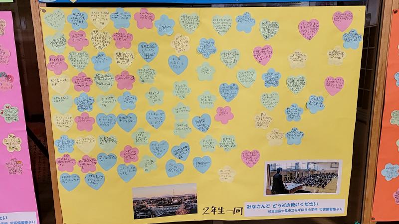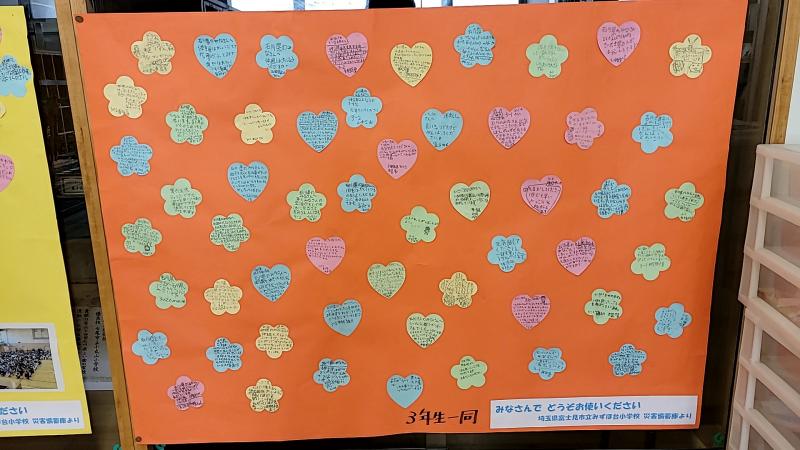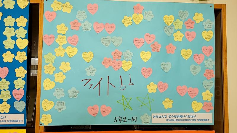 学年ごとに大きな紙いっぱいのあたたかい応援メッセージには、私たちも勇気づけられました。