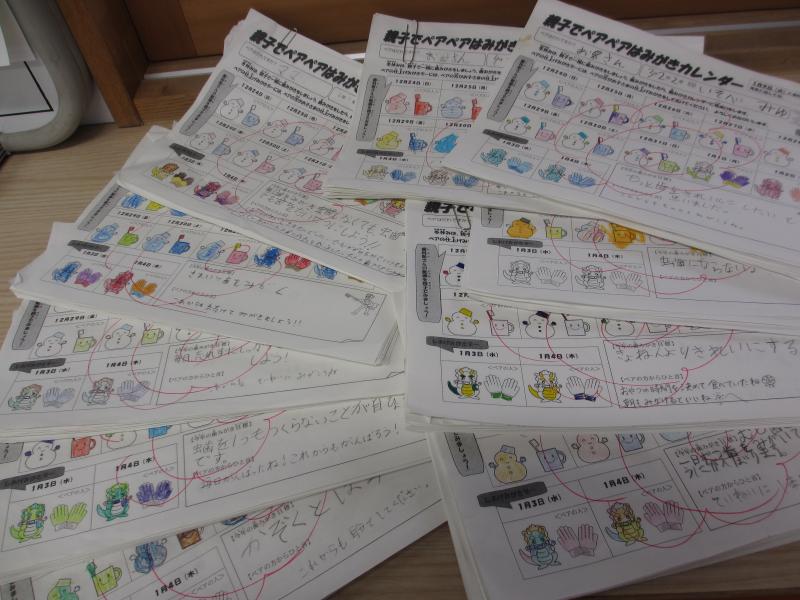 冬休み中にお願いしていた「親子でペアペア歯みがきカレンダー」を提出していただきありがとうございました。