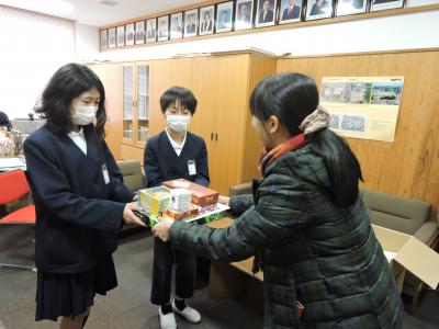 こちらも児童会役員が受け取りました。この後全校に広めていきます。