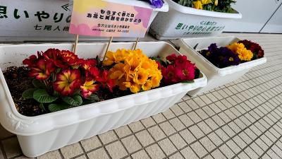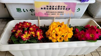 春のお花を植えたプランターが七尾花正株式会社様より、市内の小学校に進呈されました。