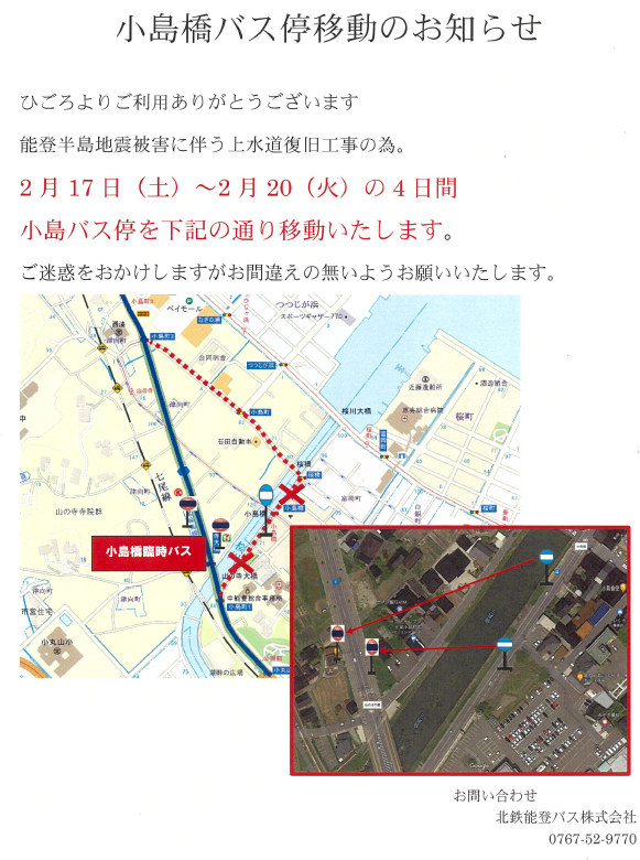 小島橋バス停が一時的に移動します。