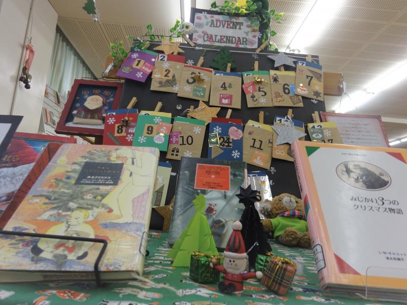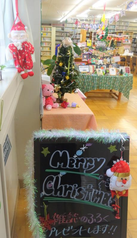 今、図書室はあちこちにクリスマスの飾り付けがされて華やいでいます。