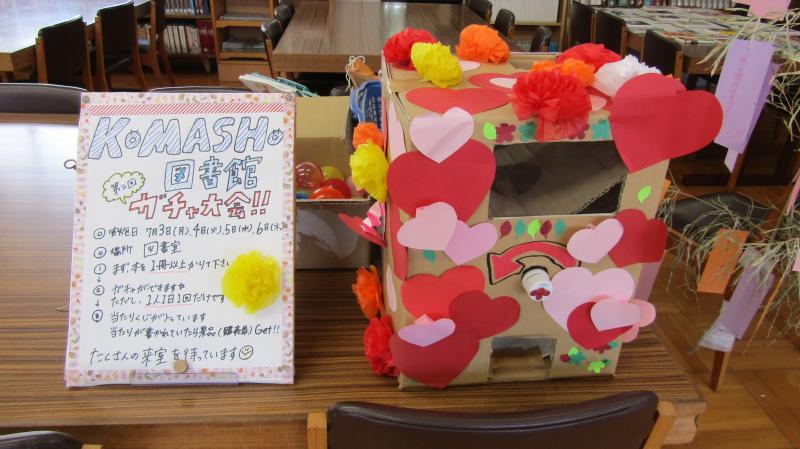 小商図書室では、今年度も様々な活動に取り組んでいます。これまでに、恒例のガチャ大会(5・7月)、講師をお迎えしてのPOP講座(5月)、七夕飾り(6~7月)、図書委員による本の選定会(7月)、小松特別支援学校との交流会(7月)、小松ビブリオ大会への参加(8月)、幼稚園での絵本読み聞かせ実習(8月)などを実施しました。