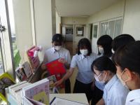図書委員会では、より多くの生徒に図書室を身近に感じてもらうため、朝読書の時間の前に教室までブックトラックで本を運ぶ「移動図書室」をはじめました。じっと図書室で待つのではなく、こちらから本をもってやってくるという新たな試みです。