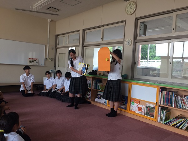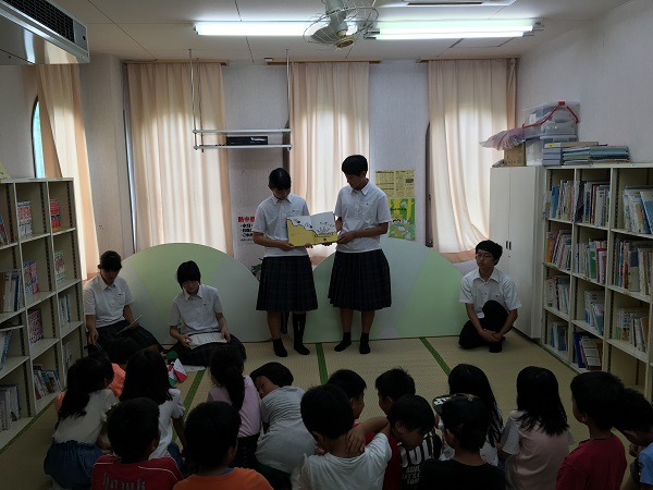 7月10日(火)、東部児童センターにて図書委員5名が絵本の読み聞かせ実演を行いました。