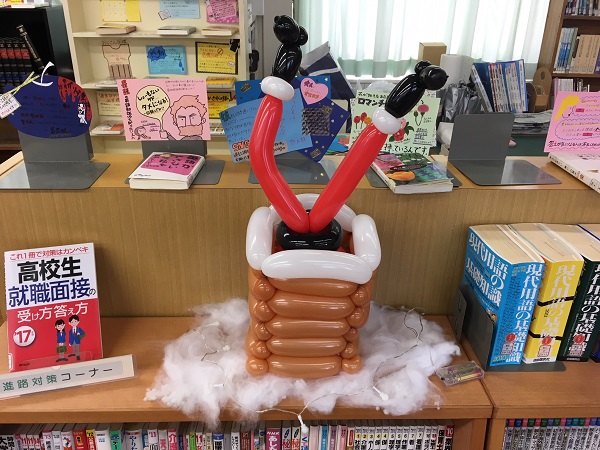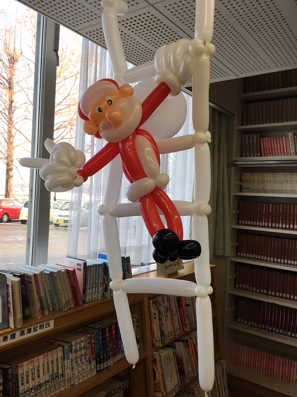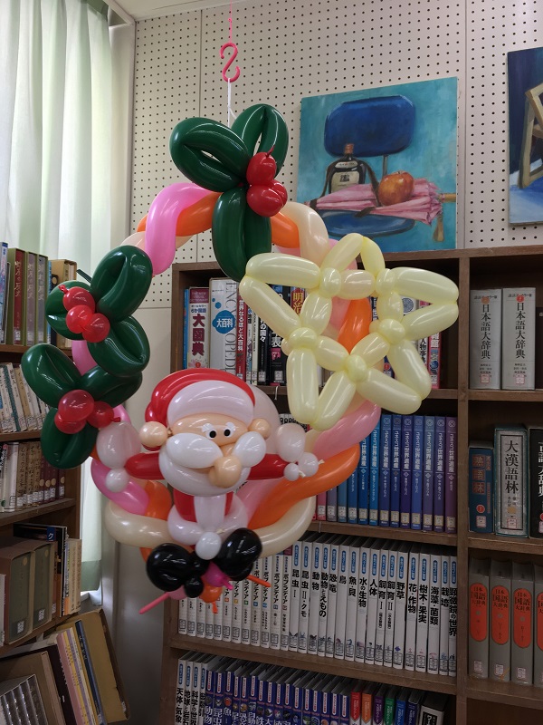 そこで、図書室もバルーンアートの達人に、クリスマスを演出していただきました!