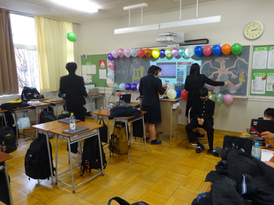 学校は4限目以降、準備の時間となり、各クラス趣向を凝らした飾りつけをしていました。