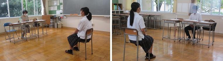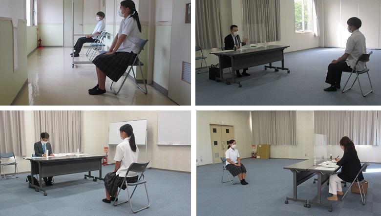 ※3年生の就職希望者を対象に、9月6日より3日間に分けて最終段階の模擬面接指導が行われています。講師にハローワーク小松より3名の方々を派遣いただき本番さながらの雰囲気で、3年生はとても緊張した面持ちで真剣に取り組んでいました。講師の方々より面接を終えるたびに、一人ひとりに的確なアドバイスをしていただきました。