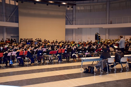 1月18日(日)根上総合文化会館タント 円形ホールにて第66回全国植樹祭いしかわ2015式典音楽隊合同練習会に参加しました。
