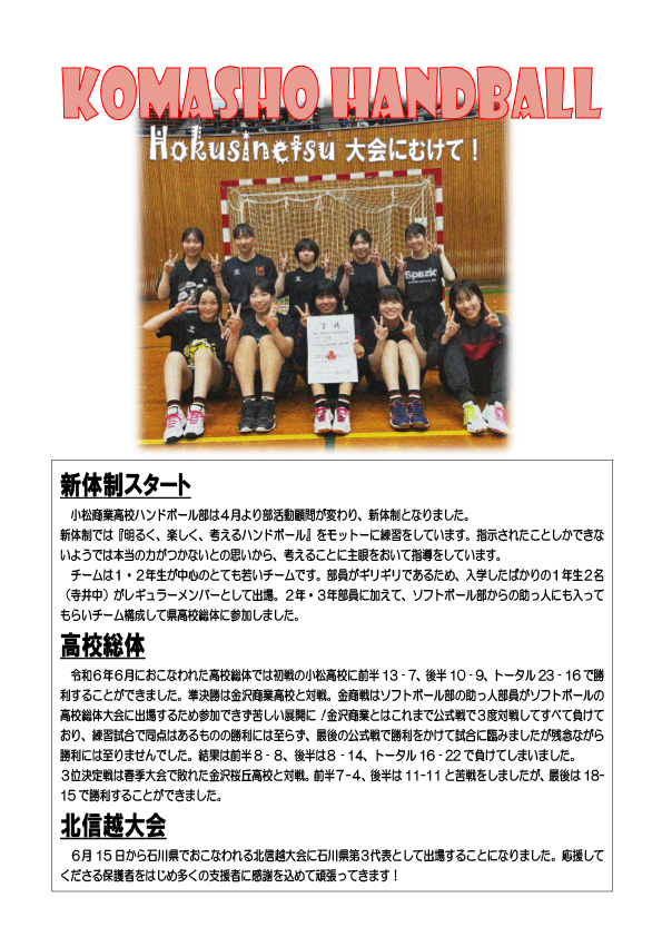 小松商業ハンドボール部の成長に乞うご期待ください。