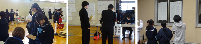※本日、4月8日(月)に入学式を迎える新入生が、制服や体操服、シューズ等を購入しました。生徒たちは、とってもいい笑顔で真新しい制服に袖をとおして試着していました。また、クラス発表も同時に行われ4月8日から始まる高校生活への期待に胸を膨らませていました。