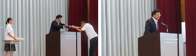 ↑※式の前には、日本高野連より善行表彰をいただいた小村くんやカヌー部の選手たちの表彰伝達式が行われました。