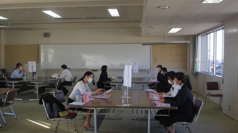 2020年11月18日 15時08分11月18日(水)2年生を対象に「上級学校説明会・就職講話」を開催しました。進学希望者は、県内の大学・短大・専門学校を中心に、直接、各学校の特色をお聞きすることができました。就職希望者は、就職講話として、就職活動の流れ、高卒就職を取り巻く環境、採用試験の内容、面接試験についての心構えなどをお話しいただきました。これから2年生は、具体的に進路を決定していきます。今回は、そのための良い機会にして欲しいと思います。