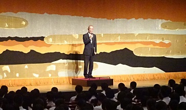 ※会場を小松市公会堂に移し2学期の始業式が行われ、橋場校長より「2学期のスタートをしっかりと!」「高い理想をもって行動を!」などとお話いただきました。