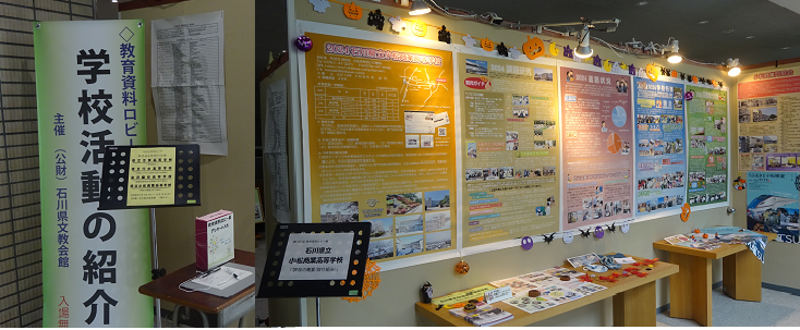 ※今年度も(公財)石川県文教会館主催の”特色ある学校活動”の展示が会館ロビーにて行われており、県内の高校が順番に展示しています。本校は、10月9日(水)~20日(日)の間、「学校の概要」について展示しております。お近くにお越しの際は是非ともお立ち寄りください。