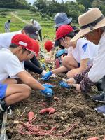 この夏の暑さで土がカチカチに固まっていましたが、地域の方がスコップで土をおこしてくださったおかげで、たくさんのお芋を掘り出すことができました。
