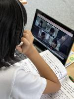 担当の先生から諸注意を聞いた後、各グループに分かれて話し合いを進めました。自己紹介の後、画面上で顔を見合いながら、役割分担をしました。自分から積極的に話しかけ、自らリーダーを引き受けていた子どももいました。
