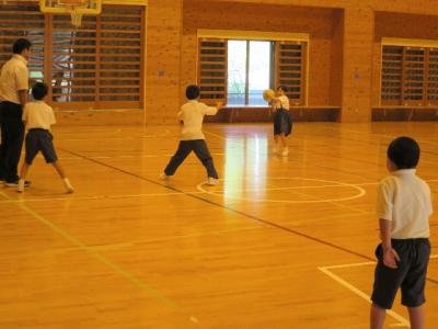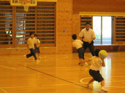 長休みは、貸し切りの体育館で、先生も交えてドッチボールをしました。二回戦は、「1年生 VS 3年生・先生」で戦いました。途中で時間になったので勝敗は分かりませんが、みんなとても楽しそうでした。