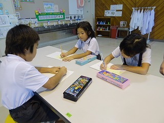 作文タイムで修学旅行の感想を書いたり、秋の俳句を考えたりしました。