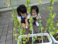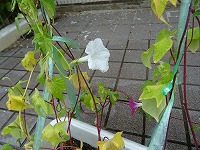 1・2年生が育てた朝顔に白色の朝顔がありました。見つけた2年生が、「びっくりした!」と教えてくれました。