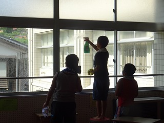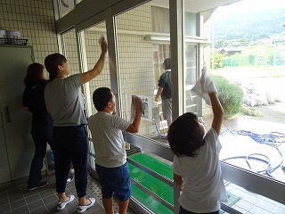 今日は、児童とPTAと職員で窓をふきました。とてもきれいになり、清々しい思いで2学期が迎えられそうですね!本当にありがとうございました。