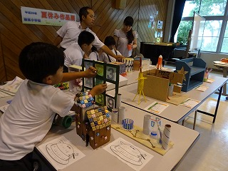 友だちが作った作品に興味津々の児童、作るのに苦労したことを先生に話したい児童が多かったです。