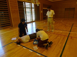職員で緊急時対応訓練をしました。今回は、「防災」と「AED」の2本立てです。