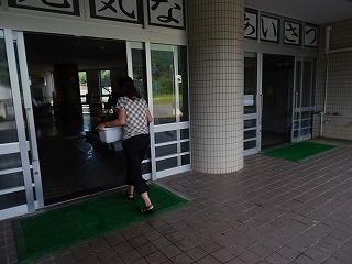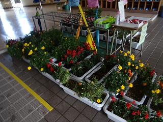学校も明日予定していた登校日を延期し、プール開放を中止しました。プールのテントや花のプランターを風で飛ばないようにしました。