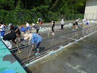 授業参観のあと、保護者の方々にも手伝っていただき、3~6年生でプール掃除をしました。児童はとっても働きました。