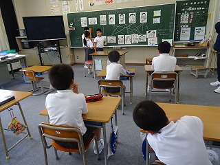 今日は、河原田小学校と三井小学校の5・6年生が来てくれました。グループ学習などでたくさんの友だちの意見をきくことができるのはいいですね。児童は、楽しそうにしていました。