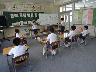 3・4年生は、保健の先生と一緒に「楽しい水泳学習にするために」と「ほめほめシャワー」を勉強しました。