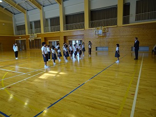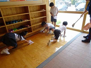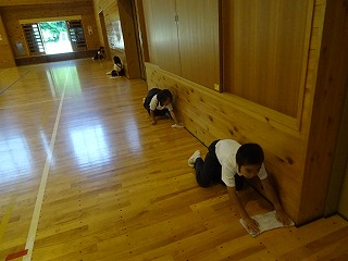 全校水ぶきで、体育館の隅や体育館廊下、更衣室の水ぶきをしました。