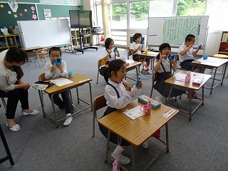 むし歯なしで賞の表彰がありました。18人中9人がむし歯なし、3人が治療済みです。早く全員治して、はなまるをゲットしよう!